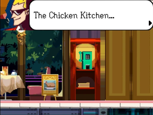 This Chicken Kitchen serves as Lynne's meeting point to pick up Kamila after a break in of their apartment. Due to the Criminal Couple Kidnapping Kamila mistaken for Amelie, Lynne waited for hours until an incident she saves Memry's life from the Van crashing into the place that ends up getting Lynne crushed by the giant Chicken decoration. Thanks to Sissel, Lynne was saved and the accident had never happened.